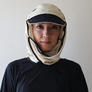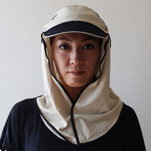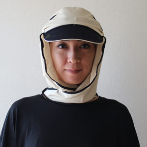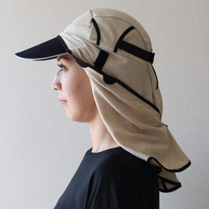 ①基本形では、横からの日差し、後ろからの首筋への日差しを防ぐことができます。