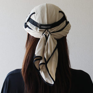 また御覧のように口と鼻を覆うかぶり方もできますから砂塵よけとしてもお使いいただけます。