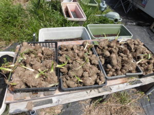 今年の里芋は地元の品種「赤芽」と「早生」と「海老芋」の